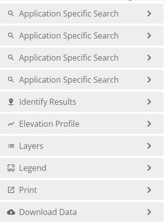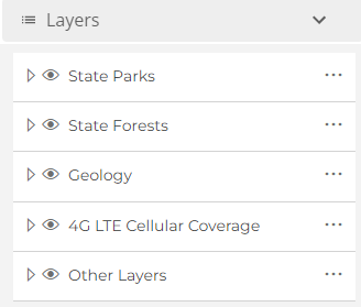 Each data layer grouping has an arrow to the left of its name. When the arrow is clicked, the group layer will expand to show the data layers it contains. Most of data layers in the expanded list will be individual layers, but some will contain their own sublayers. These lower order group layers also have an arrow to the left of their names.