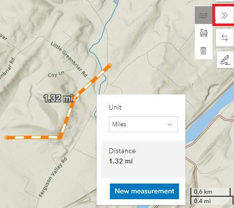 - To clear the line, click “New measurement” in the pop-up menu or select the trash can in the widget menu
